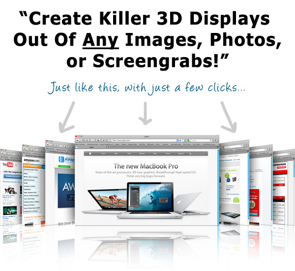 With 3D Web Display Maker you can create killer looking web displays for all your images, photos and screen grabs… just like the “coverflow” effect on the iPhone.