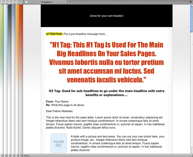 P.S. This template (and all variations of the template) comes in simple HTML format, with some CSS styling. It’s a basic “what you see is what you get” template. No advanced technical skills required and no special software required. You just need some basic HTML skills and any HTML editor you already have.