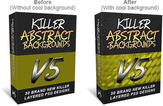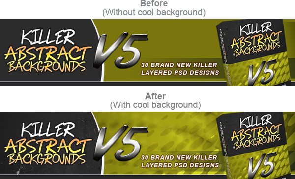 Here are some examples of what a nice background can do for a design. In the first example, I have a “before and after” header image I created for this product…