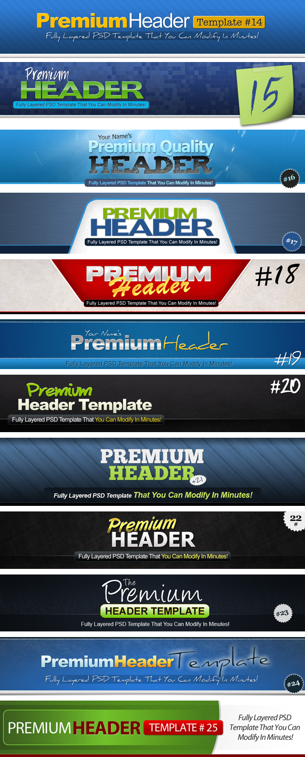 With THIS package, I focused on QUALITY over quantity, and created 25 premium header templates instead of 100’s of cheap ones.