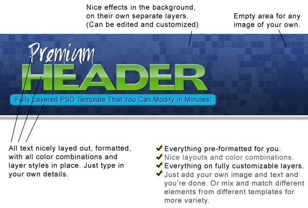 “Grab These Brand New Premium Header Templates With Full PSD Source Files And Easily Create Your Own Awesome Headers In Minutes!”