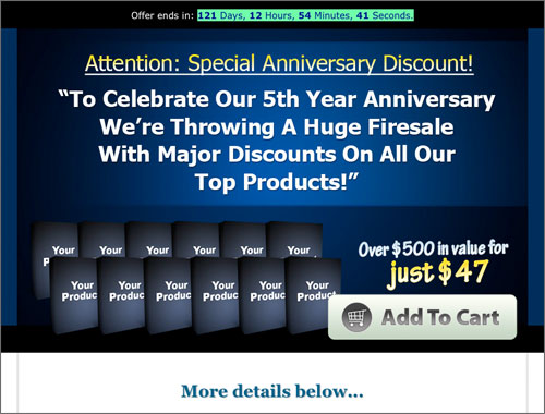 Anniversary sales and “fire sales” are a great way to make money fast. You put together a big package of your best products and offer them all for one low price for a limited time. Your customers love it, and you make a nice chunk of money in a short period of time.