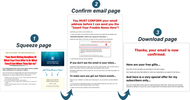The whole opt-in process is already done for you. You get the main squeeze page formated in a way to maximize opt-ins. And you also get the “Confirm your email” page, and download page. So you can have a full opt-in process set up minutes.